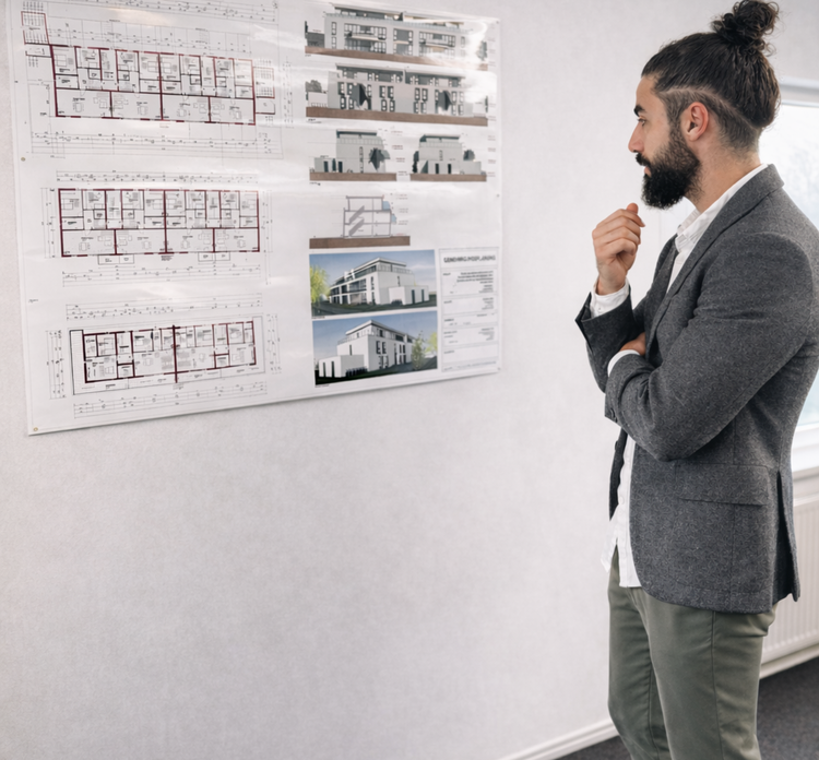 Standardlösungen führen selten zu einem Zuhause mit Charakter. Deshalb nehmen wir uns Zeit, Ihre Vorstellungen zu verstehen und in maßgeschneiderte Entwürfe zu überführen. Vom ersten Skizzenstrich bis zum Einzug behalten wir Ihre Bedürfnisse im Fokus – technisch, ästhetisch und wirtschaftlich.